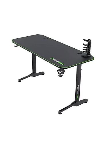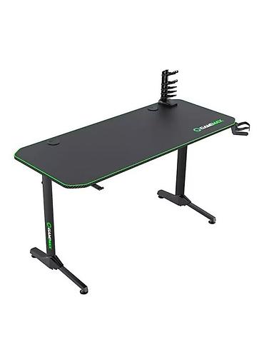 - Просторная столешница прямоугольной формы с закруглёнными углами, черное покрытие с зелёной окантовкой и логотипом GameMax.