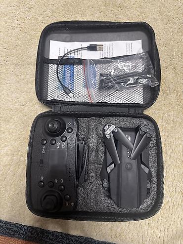 - Пульт дистанционного управления с джойстиками, кнопками автозапуска/посадки, возврата, регулировки высоты и держателем для смартфона.
