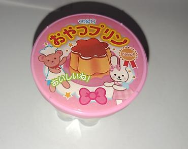 - Дизайн: яркие наклейки с персонажами, бантиками и надписями «New!» и «おいしいね!». Крышка украшена иллюстрацией пудинга.