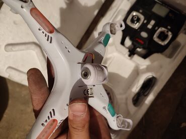 Дрон на пульте управления, все работает кроме одной поломке, на одной из крылов не хватает пластивковой окружности из-за чего дрон летает чуть криво, можно починить за 100-200сом.