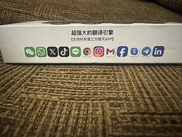 - Поддержка работы в популярных приложениях (иконки на коробке: WeChat, WhatsApp, X, TikTok, LINE, Chrome, Instagram, Gmail, Facebook, Skype, Telegram, LinkedIn и др.).