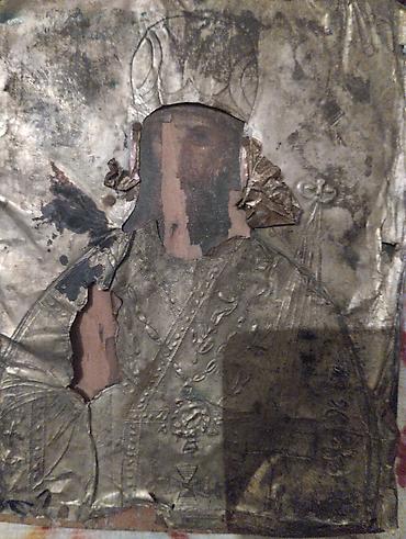 Картина "Город". Холст, темпера, 25х17