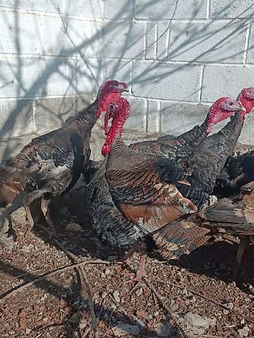 Индюки, домашнее подворье - Порода/окрас: красный (самцы с ярко‑красными кораллами и веерообразным хвостом, самки более однотонные). - Содержатся на выгуле во дворе, доступ к свободному пространст...