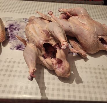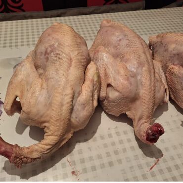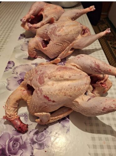 Домашние тушки птицы, полностью ощипанные и потрошённые. - Цельные тушки крупного размера, без голов и лап, с сохранёнными крыльями и кожей. - Чистая обработка: удалены внутренности, остаточные пе...