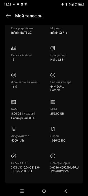 - ОС: Android 13, оболочка XOS V13.0.0