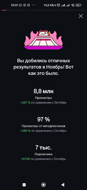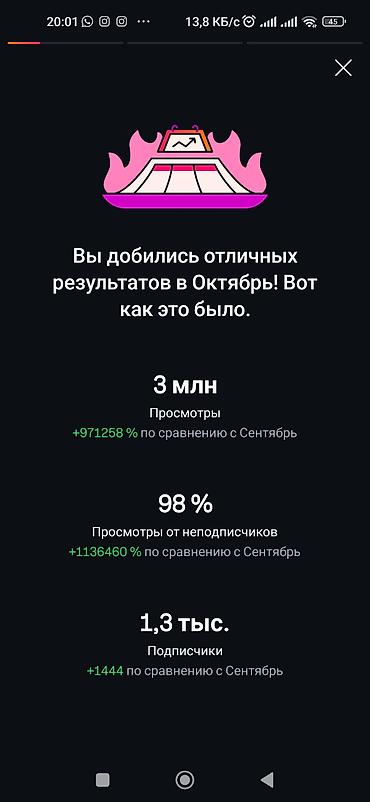 - Просмотры Reels и публикаций до 3 млн в месяц (пример: октябрь — 3 млн; декабрь — 2,5 млн).