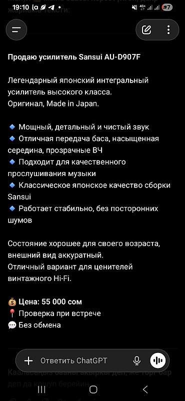 Интегрированный стереоусилитель Sansui AU-D907F Extra 100 v. Сост отл