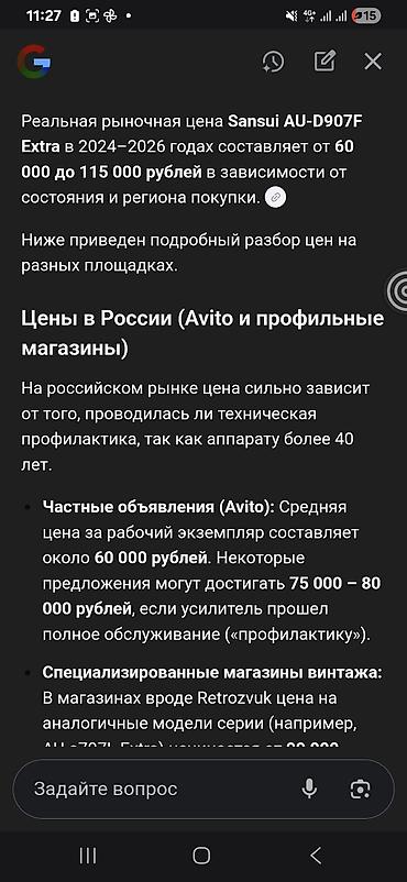 Интегрированный стереоусилитель Sansui AU-D907F Extra 100 v. Сост отл.