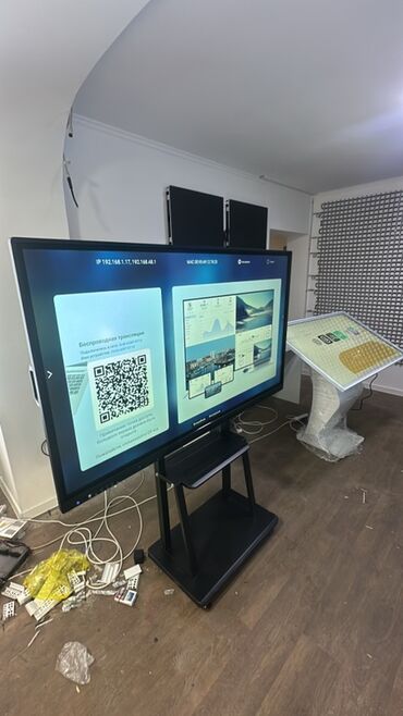 - Беспроводная трансляция с ПК и мобильных устройств: вывод экрана по Wi‑Fi; подключение по QR-коду.