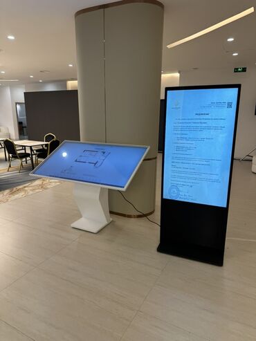 - Напольные интерактивные панели с большим сенсорным экраном, горизонтальная (наклонная) и вертикальная установка.