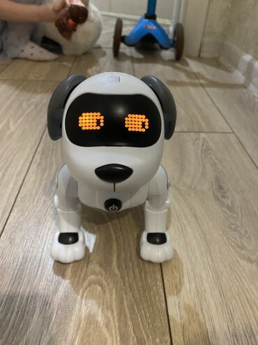 - Комплект: робот‑щенок и пульт дистанционного управления.