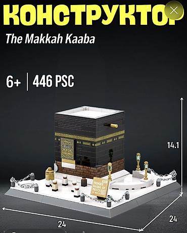 - The Makkah Kaaba — 446 pcs, 6+. Размер основания 24×24 см, высота 14.1 см. Четкая геометрия строения, золотистые декоративные элементы, фонари, цепи и мини-детали окружения, экспозиционная табличка.