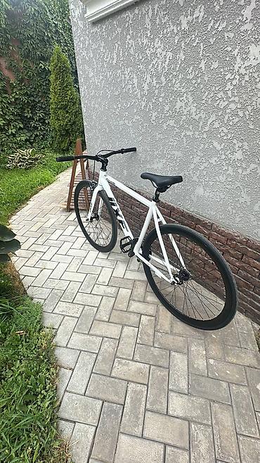 Фикс- люси велосипед в - Рама: стальная, классическая геометрия трек/шоссейная, окраска «mint» с наклейками. Размер ориентировочно M (под рост ~165–180 см, по фото — длинная горизонтальная труба)....