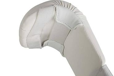 Перчатки для каратэ изготовлены из высококачественного полиуретана. Мягкий и прочный материал, внешне выглядящей как кожа, обладающей устойчивостью колебаниям температуры и влажности. Внутри находиться инжекционный литой вкладыш из пены высокого давления, который обеспечивает однородное поглощение удара, что гарантирует безопасность для рук спортсменов во время тренировок. Присутствуют петли для двух пальцев, а запястье фиксируется на липучку.