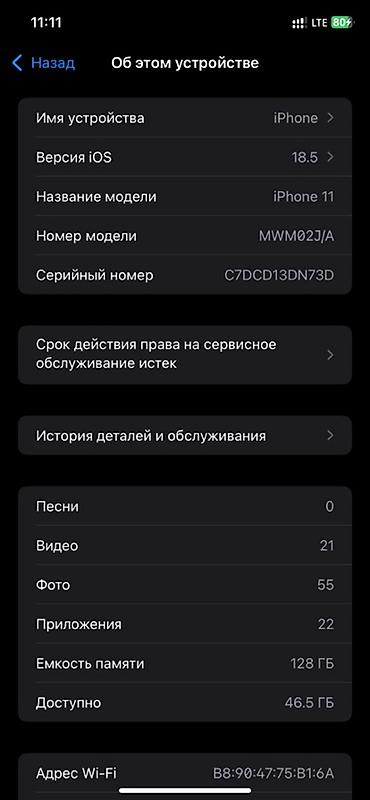 - Память: 128 ГБ (доступно ~46,5 ГБ на момент скриншота)