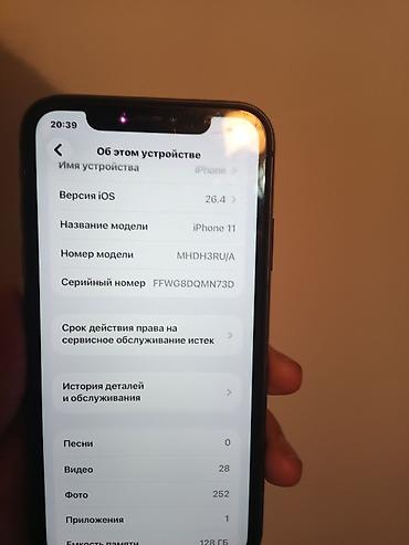IPhone 11, 128 ГБ Характеристики: - Модель: iPhone 11 (номер модели MWM22RM/A) - Память: 128 ГБ, доступно около 60,99 ГБ - Цвет корпуса: темный (видно на фото) - iOS: версия 16.2.1 (по скриншотам ...
