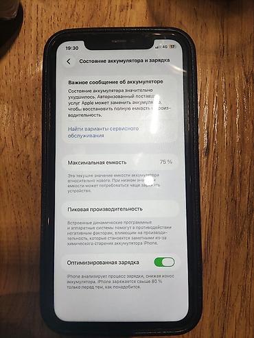 - Аккумулятор: в разделе «Состояние аккумулятора» отображается сообщение о значительном снижении емкости, максимальная емкость 75%; включена «Оптимизированная зарядка»
