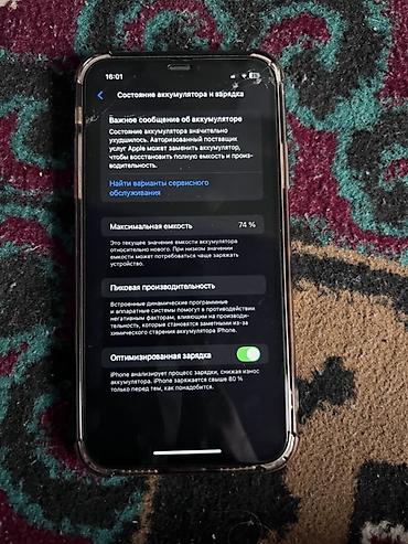 - Аккумулятор: в настройках отображается максимальная емкость 74%, включена «Оптимизированная зарядка».