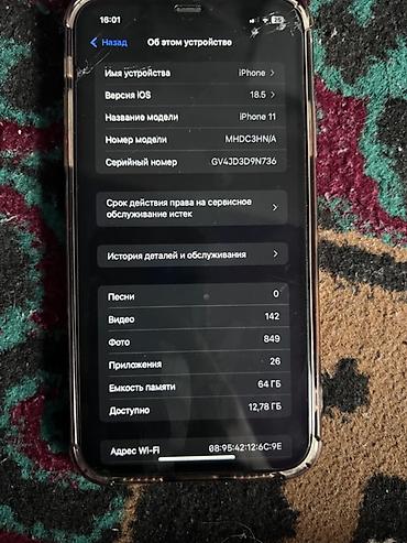 IPhone 11, 64 ГБ, Белый, Чехол, 74 %