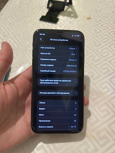 IPhone 11 📱 Память: 64 GB 🔋 АКБ: 82% (родной) 🧠 Face ID: иштейт 🌈 True Tone: бар ⚙️ Баары иштейт 🎨 Түсү: кара (Black) Цена; договорная Обмен на айфон хс хр с вашей доплатой напишите
