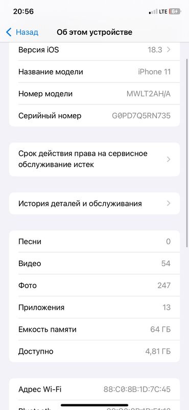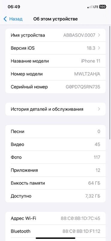 - Память: 64 ГБ, доступно 7,32 ГБ