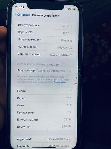 - Раздел «Об этом устройстве»: iPhone 11, номер модели MHD F3KH/A, iOS 17.6.1, объём 64 ГБ