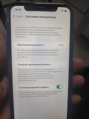 - Аккумулятор: максимальная ёмкость 82% (скрин в галерее), включена «Оптимизированная зарядка»