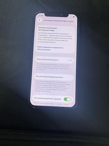 - Аккумулятор: максимальная ёмкость 77% (в разделе «Состояние аккумулятора» отображается важное сообщение; включена «Оптимизированная зарядка»)