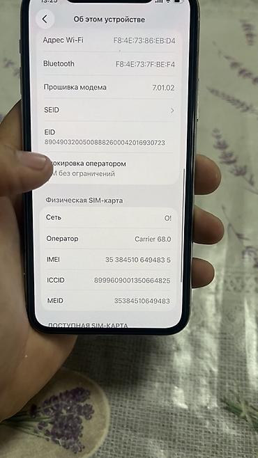 - Идентификаторы: серийный номер F17ZQR5PN6Y3, IMEI 35, MEID 33, ICCID 0664825