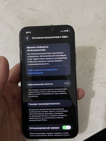 Состояние аккумулятора по настройкам: максимальная ёмкость 71% (в разделе «Состояние аккумулятора» отображается важное сообщение о необходимости обслуживания для восстановления полной ёмкости и производительности).