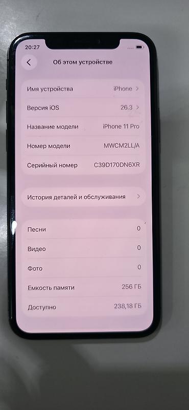 IPhone 11 Pro, 256 ГБ, цвет Silver - Дисплей 5.8" OLED Super Retina XDR с вырезом под Face ID - Память 256 ГБ (на фото экрана: используется ~14.86 ГБ из 256 ГБ) - Тройная основная камера с широкоу...