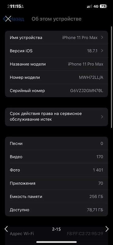 IPhone 11 Pro, 256 ГБ, цвет Midnight Green Основные характеристики: - Модель: iPhone 11 Pro (номер модели MWCC2J/A) - Память: 256 ГБ (доступно ~237,78 ГБ на момент снимка) - iOS: 18.3.2 - Экран: ...