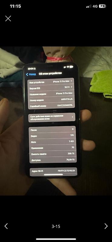 IPhone 11 Pro Max, 256 ГБ, цвет Space Gray АКБ 76% НЕ МЕНЕННЫЙ (15.000 сом ОКОНЧАТЕЛЬНО) Основные характеристики: - Экран 6.5" Super Retina XDR (OLED) с Face ID - Модель: iPhone 11 Pro Max (номер...