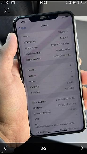 IPhone 11 Pro Max Память: 512 ГБ Состояние: хорошее (есть царапины) АКБ: 100% Комплект: чехол Цена: 20 000 сом зарегистрирован 1 сим 1 есим
