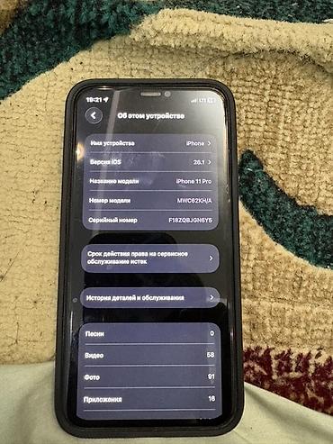 - Память: указаны медиаданные в системе — 58 видео, 91 фото, 16 приложений (видно на экране «Об этом устройстве»)