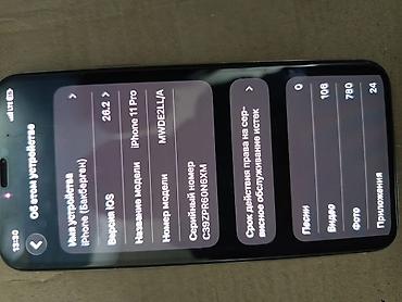 - Модель в системе: iPhone 11 Pro; на экране сведений об устройстве отображается серийный номер C3...6XM и информация о завершении стандартной поддержки.