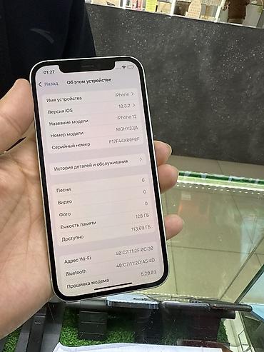 IPhone 12, 128 ГБ, цвет белый Характеристики и детали по фото экрана: - Модель: iPhone 12 (номер модели MGJE3KN/A) - Память: 128 ГБ (доступно около 90,84 ГБ на момент снимка) - iOS: 18.6.2 - Диспл...