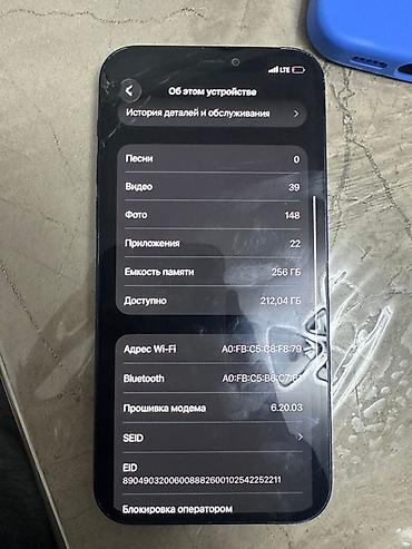 - Память: 256 ГБ (доступно ~212 ГБ по скриншоту)