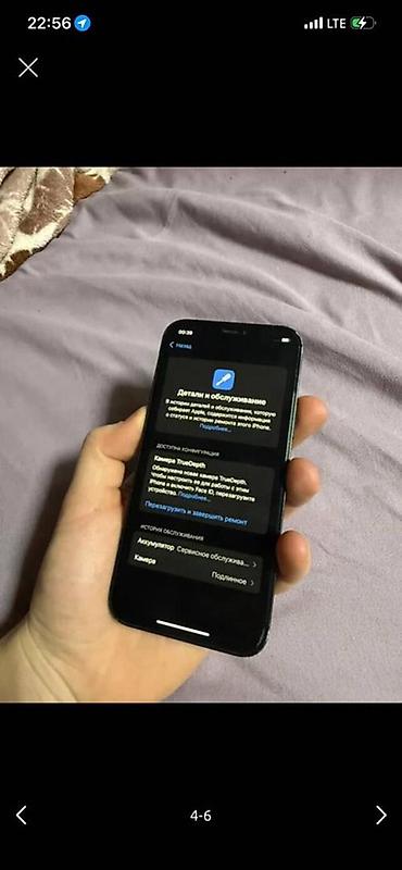 - В разделе “Детали и обслуживание” указано: камера TrueDepth — заменена; в истории обслуживания отображаются записи по аккумулятору и камере.