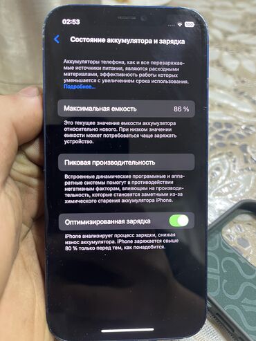 - Аккумулятор: максимальная емкость 86% (на скриншоте)