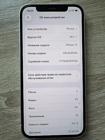 IPhone 12🔥 📍Память - 128гб 📍АКБ - 75% 📍Не вскрытый, все родное 🤝 📍Face ID, True Tone ✅ 📍Состояние - Идеальное 💸Цена - 15500 сом 📍Отправляем по всем регионам КР🇰🇬 📍Trade In- Обмен есть 🤝 Для п...