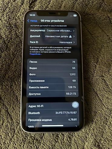 IPhone 12🔥 📍Память - 64гб 📍Физ сим + E Sim 📍АКБ - 76% 📍Не вскрытый, все родное 🤝 📍Face ID, True Tone ✅ 📍Состояние - Идеальное 💸Цена - 13500 сом 📍Рассрочка ; С участием банка и без банка ✅ 📍Онла...
