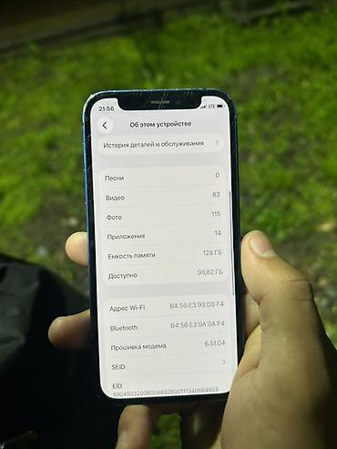 IPhone 12 mini, 128 ГБ, цвет синий Характеристики и детали с экрана устройства: - Модель: iPhone 12 mini (номер модели MGE63B/A) - iOS: 26.1 - Память: 128 ГБ, доступно около 81,17 ГБ - Серийный но...