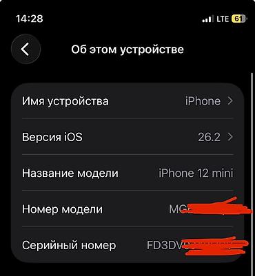 - Модель: iPhone 12 mini (смотри скрин «Об этом устройстве»)