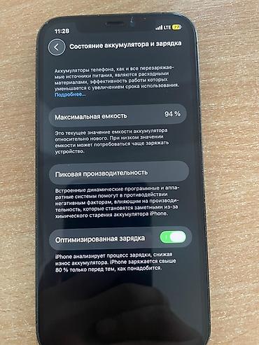 - Аккумулятор: максимальная ёмкость 94%, оптимизированная зарядка включена