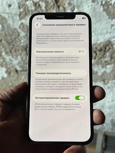 - Состояние аккумулятора: максимальная емкость 81% (на скриншоте). Включена «Оптимизированная зарядка».