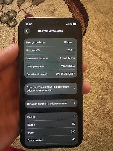 IPhone 12 Pro, модель MGMQ3KH/A, iOS 18.6.2 Основные характеристики: - Дисплей 6.1", OLED Super Retina XDR - Тройная камера 12 Мп (широкоугольная, сверхширокоугольная, телефото) с LiDAR - Процессо...