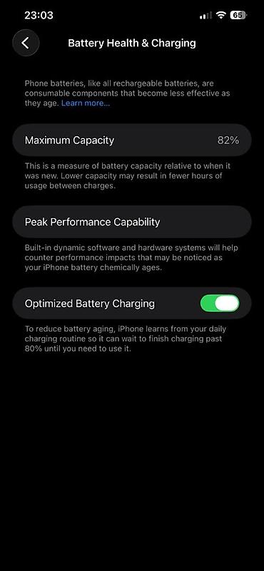 - Функции: Optimized Battery Charging включена
