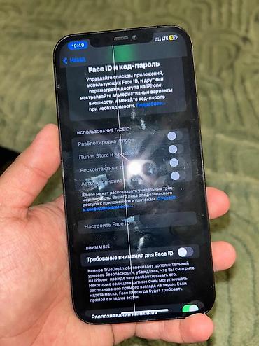 iPhone 12 Pro Max есть нюанс. Экран под замену или под защитное стекло (сенсор работает без нареканий). Face ID нет. Всё остальное в оригинале, без ремонтов. В комплекте: коробка 5 чехлов и зар...
