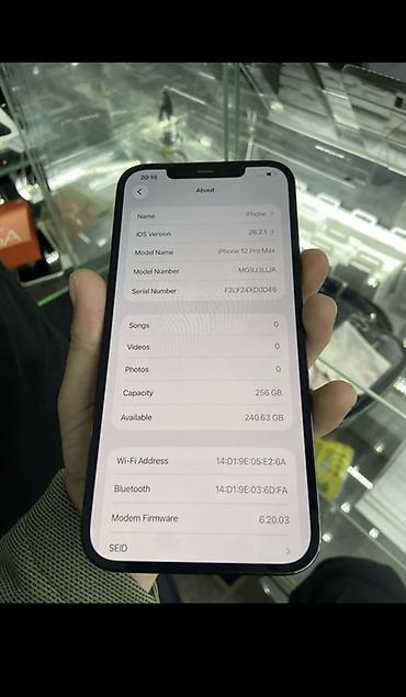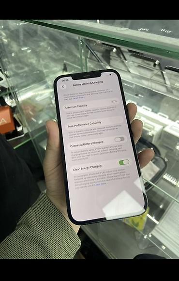 - На фото — пункт «Battery Health & Charging» и «About» с моделью iPhone 12 Pro Max (MG9J3LL/A), что подтверждает объём памяти и версию системы.